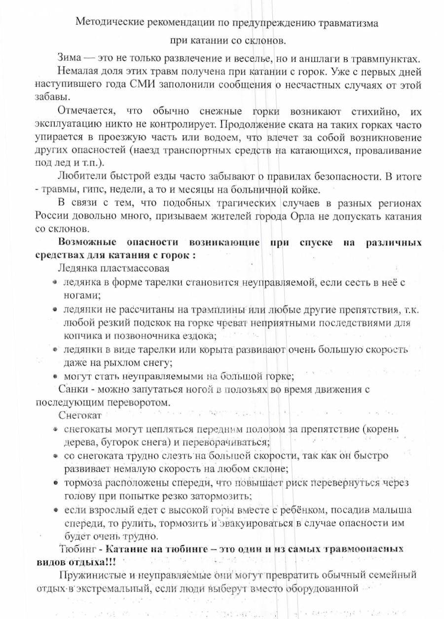 Методические рекомендации по предупреждению травматизма при катании со склонов